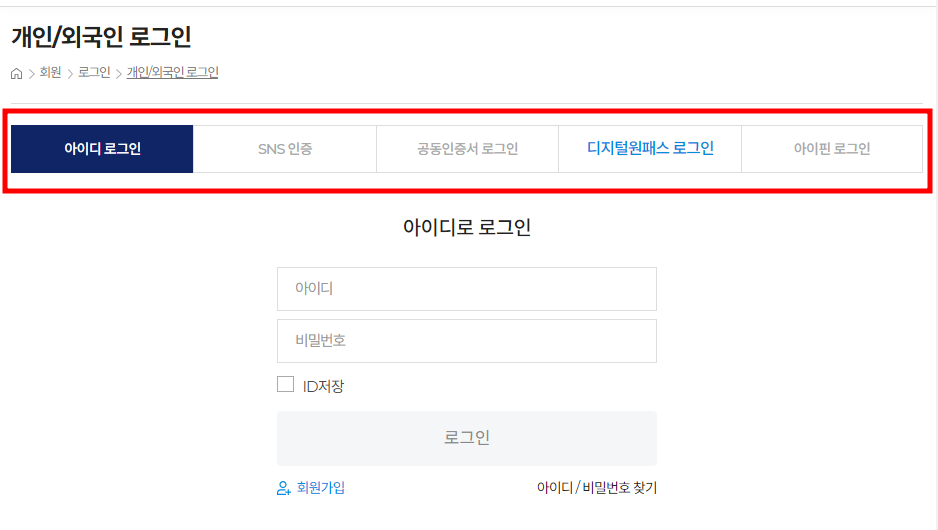 혹은 위의 바로가기를 통해 보다 간편하게 로그인 페이지로 이동합니다.