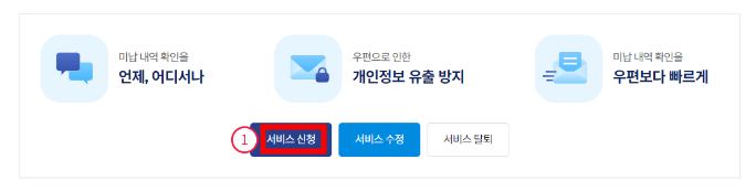 ① [서비스 신청 / 서비스 수정 / 서비스 탈퇴] 각 버튼을 선택하여 서비스 신청, 수정, 탈퇴를 진행할 수 있습니다