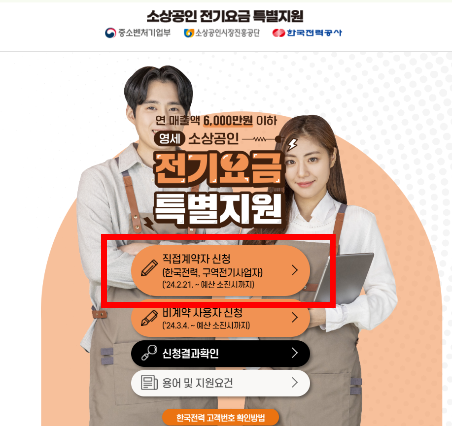 소상공인전기요금특별지원은 계약의 형태에 따라 지원방식이 달라집니다. 우선 적접계약자의 경우부터 확인해봅니다.