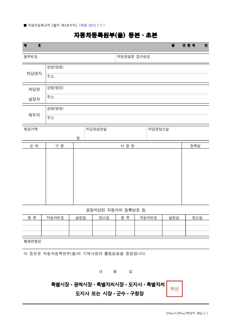 자동차등록원부 발급신청서