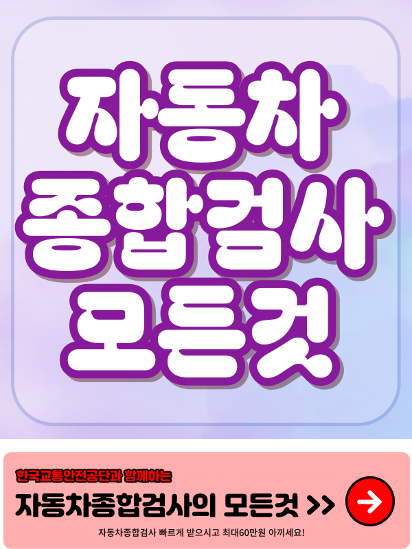 종합검사는 차량으로 직접 검사소까지가야하는 번거로움이 있지만 이를 놓치면 차량의 안전 문제가 발생할 수 있고 최대 60만원의 과태료를 받을 수 있습니다. 바쁜 일상 속에서도 종합검사를 놓치지 않기 위해 자동차종합검사의 조회부터 예약, 검사 비용,과태료까지 편리하게 이용하는 방법을 함께 알아보겠습니다.
