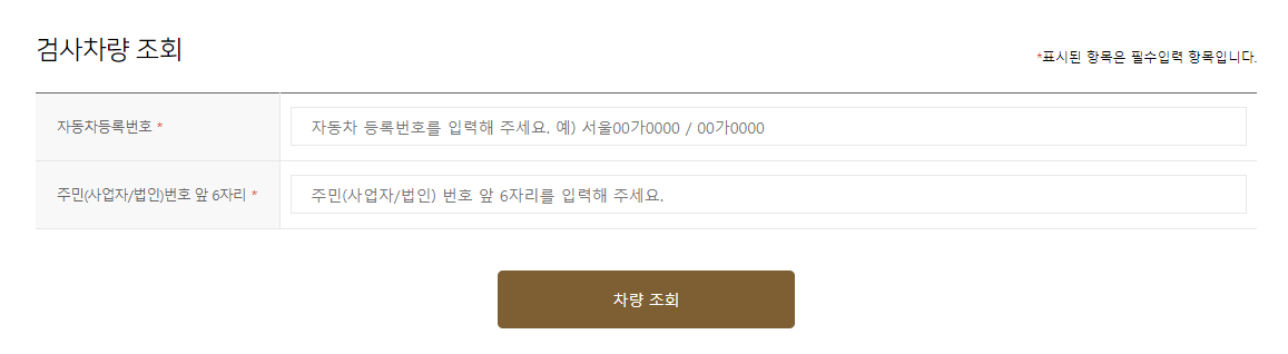 차량등록정보(차량번호와 주민등록번호)를 입력하고 조회합니다.