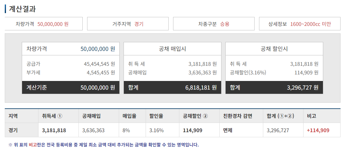 즉 5천만원짜리 신차 구매 시 발생하는 취등록세는 350만원임을 확인하실 수 있습니다.