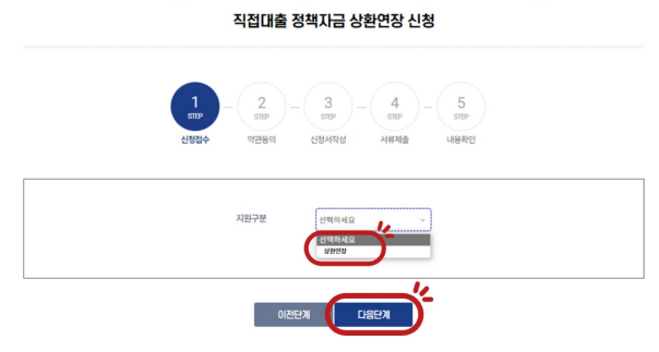 >>신청 대상인 경우 지원구분-상환연장을 확인합니다.