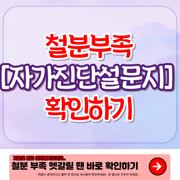 철분 결핍을 판단이 곤란한 경우 아래의 설문지를 참고하시기 바랍니다. 설문지는 증상을 기반으로 하여 신속하게 평가할 수 있도록 설계되었습니다. 이글을 읽고 설문지를 통해 철분 결핍 여부를 간단하게 확인하는 데 도움을 받을 수 있습니다.
