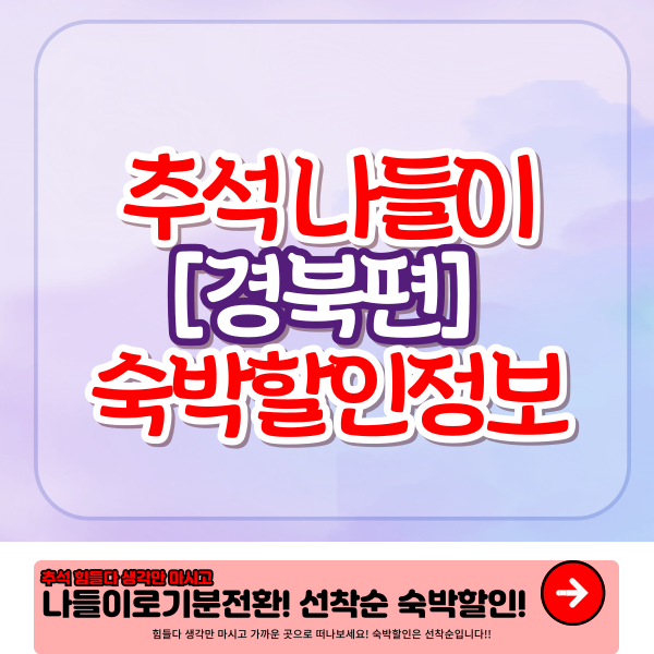 추석에 맞는 가족과 가능한 나들이 장소를 알려드릴께요^^ 확인해보시고 가까운 곳으로 가족 모두 힐링의 시간이 되시길 바랍니다. 혹시 여유가 되셔서 숙박까지 계획중이시라면 숙박 페스타를 통해 할인 받으시고 더 즐거운 가성비있는 추석 되세요^^ 선착순이니 우선 숙박페스타부터 안내하고 여행지 소개할께요^^