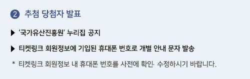 - * 당첨자 우선 예매 기간 종료 후 발생한 잔여석에 한하여 일반 예매(선착순)로 전환됩니다.