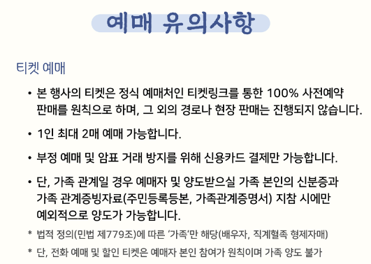 - 예매하신 본인 입장이 원칙이며, 타인 양도는 불가합니다.