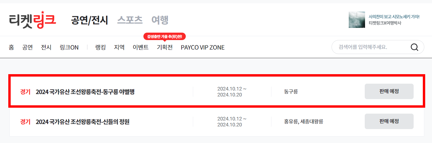 ▲ 가을 왕릉을 경험하고 싶다면 빠르게 예약하기 ▲