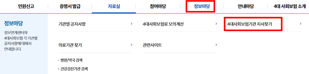 정보마당-4대사회보험기관 지사찾기