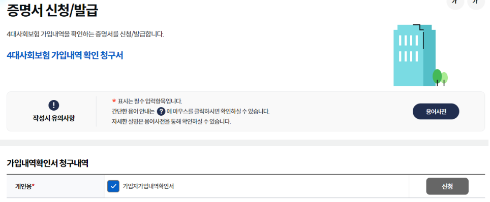 또한 4대보험 정보연계센터에서는 각종 관련 증명서의 신청 및 발급 서비스도 제공되어 필요한 서류를 편리하게 얻을 수 있습니다. 이러한 서비스를 보다 빠르고 편리하게 이용하고자 하신다면 바로가기를 이용해 보세요. 이를 통해 손쉽게 4대 보험 관련 업무를 처리하고 필요한 정보를 한눈에 확인할 수 있을 것입니다.