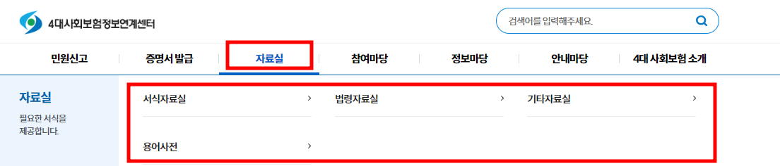 4대사회보험정보연계센터 홈페이지의 자료실에서는 4대사회보험 관련 서식을 손쉽게 다운로드할 수 있습니다. 이 외에도 4대보험 관련 법령자료, 기타자료실, 용어사전 등을 통해 필요한 정보를 제공받을 수 있습니다. 자료실은 서식자료, 법령자료, 기타자료실을 포함해 다양한 정보를 제공합니다.