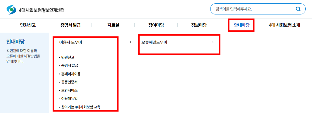 4대보험정보연계센터 홈페이지